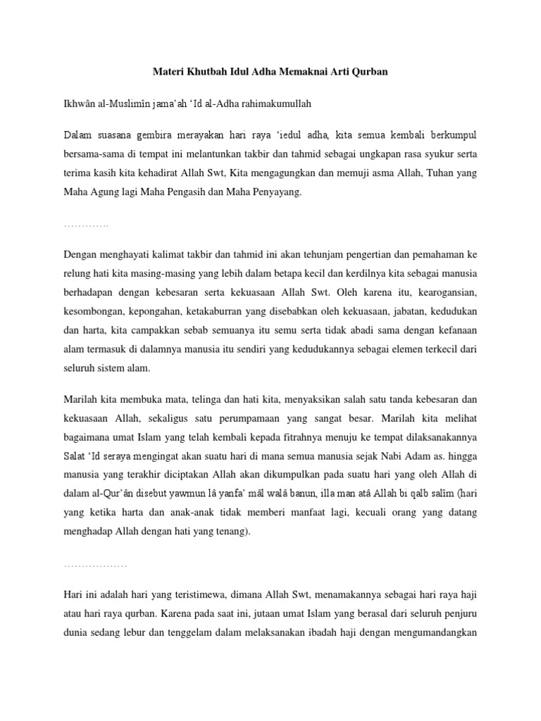 edisi 2018 contoh naskah khutbah idul adha memaknai arti via www.tongkronganislami.net. Dan ditutup dengan doa yang membuat semua jama'ah. Yang pertama saat sholat idul fithri beberapa waktu lalu, yang kedua hari ini. Muhammad syamlan 11/09/16 | 12:29 khutbah idul adha 0. Berikut teks khutbah idul adha dengan judul tiga pelajaran hari raya qurban.