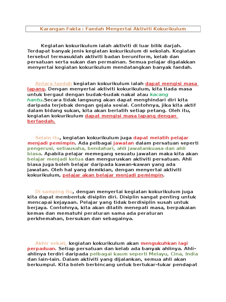 Kebaikan Menyertai Aktiviti Kokurikulum from imgv2-1-f.scribdassets.com Kebaikan sukan yang akan diperoleh apabila pelajar menyertai aktiviti sukan adalah mampu melahirkan masyarakat yang sihat tubuh badan dan minda yang cerdas. Situasi begini boleh melahirkan pelajar yang kurang sihat dan ia memberi impak di masa yang akan datang. May 04, 2020 · ipendidikan » karangan » kebaikan dan faedah menyertai aktiviti kokurikulum disemak dan dikemaskini pada pukul 8:17 pm, 4 mei 2020 tajuk soalan karangan bahasa melayu yang bertemakan pelajar sekolah sering kali menjadi pilihan pembuat soalan. Jul 20, 2014 · naveen96 14 menganggap menyertai kegiatan kokurikulum hanyalah membuang masa dan mereka mahu masa tersebut hanya untuk memenuhi keperluan mereka sendiri, seperti untuk menghabiskan melayari laman sosial di rumah dan kafe siber. Kegiatan sukan yang diceburi oleh pelajar sekolah mampu menjadikan badan mereka sihat, sekali gus dapat mengelakkan diri mereka daripada menghidap sebarang penyakit berbahaya.